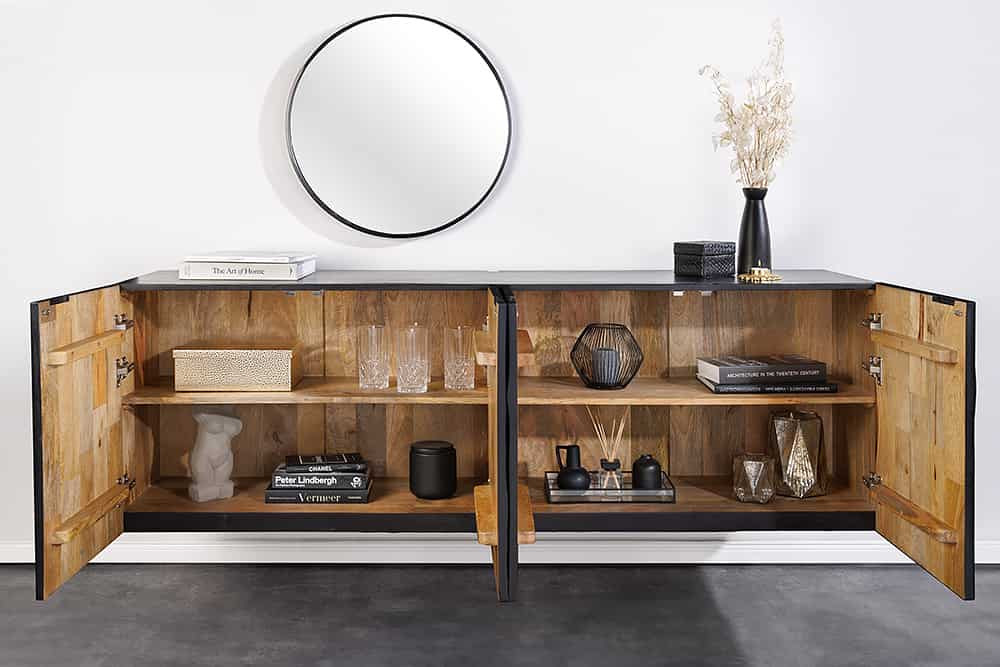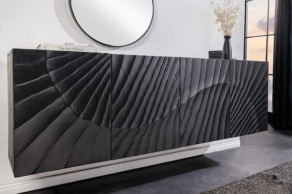 Design komód Shayla 177 cm függő fekete mangó