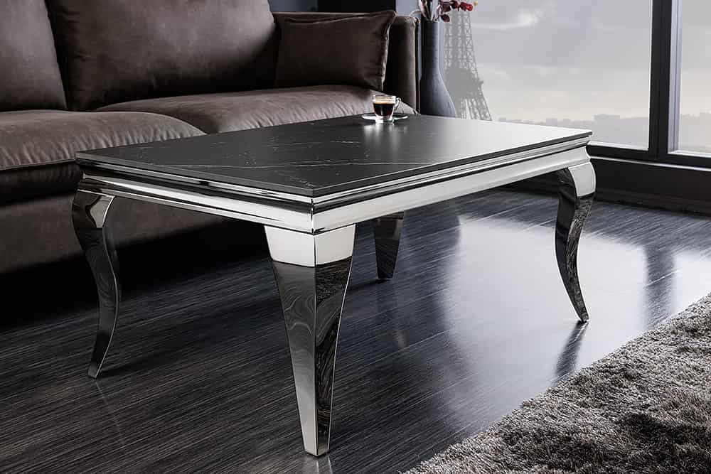 Stílusos dohányzóasztal Rococo 100 vm fekete szinterezett kő / ezüst