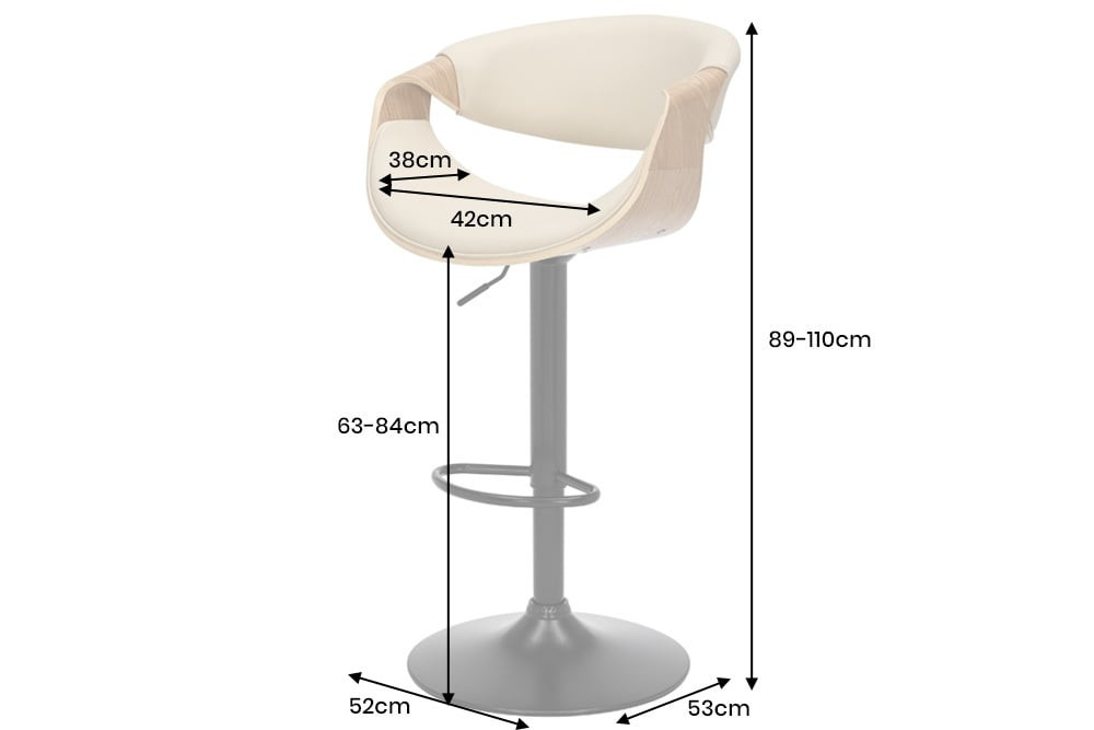 Méretek: 52cm x 89-110cm x 53cm (szélesség x magasság x mélység) Ülőrész mérete: 42cm x 63-84cm x 38cm (szélesség x magasság x mélység) Max. terhelhetőség: 130kg Szín: bézs, natúr barna, fekete Anyag: műbőr (100% poliuretán), tölgyfa, fém