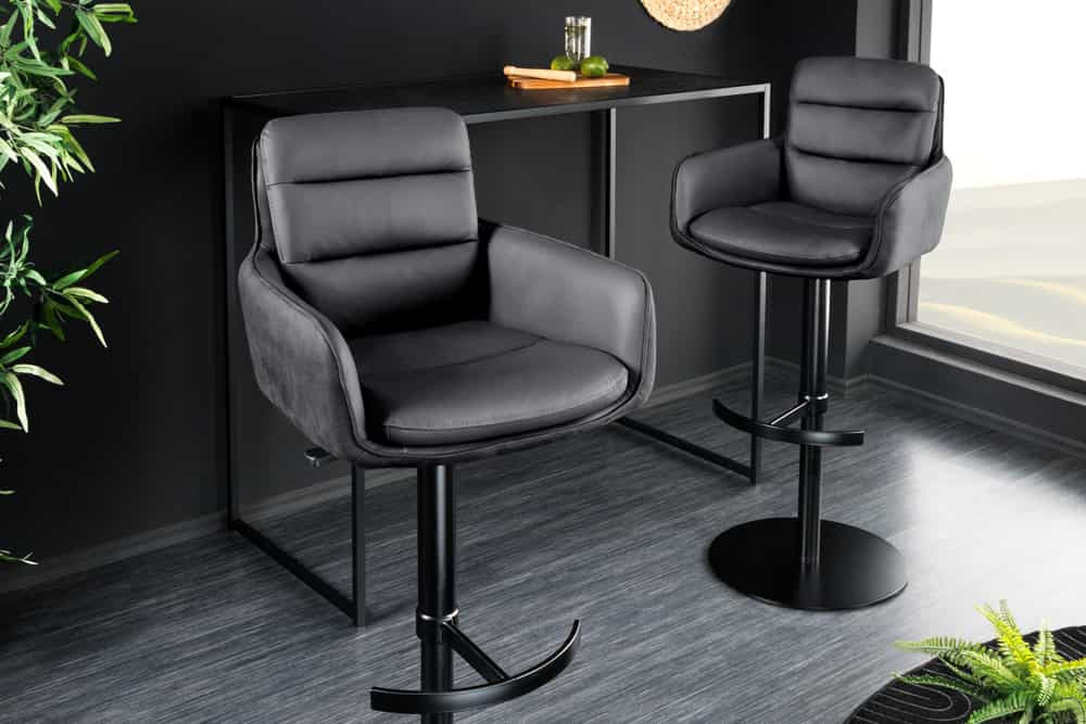 Stílusos kartámlás forgó bárszék Maddison III antracit bőr / mikroszálas szövet
