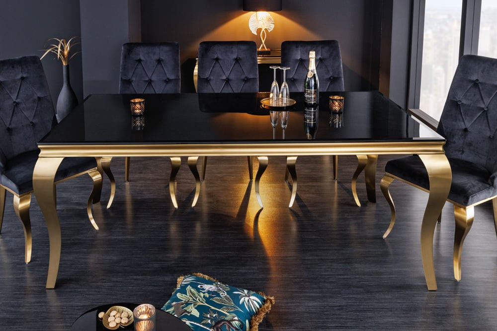 Design étkezőasztal Rococo 180 cm fekete / arany