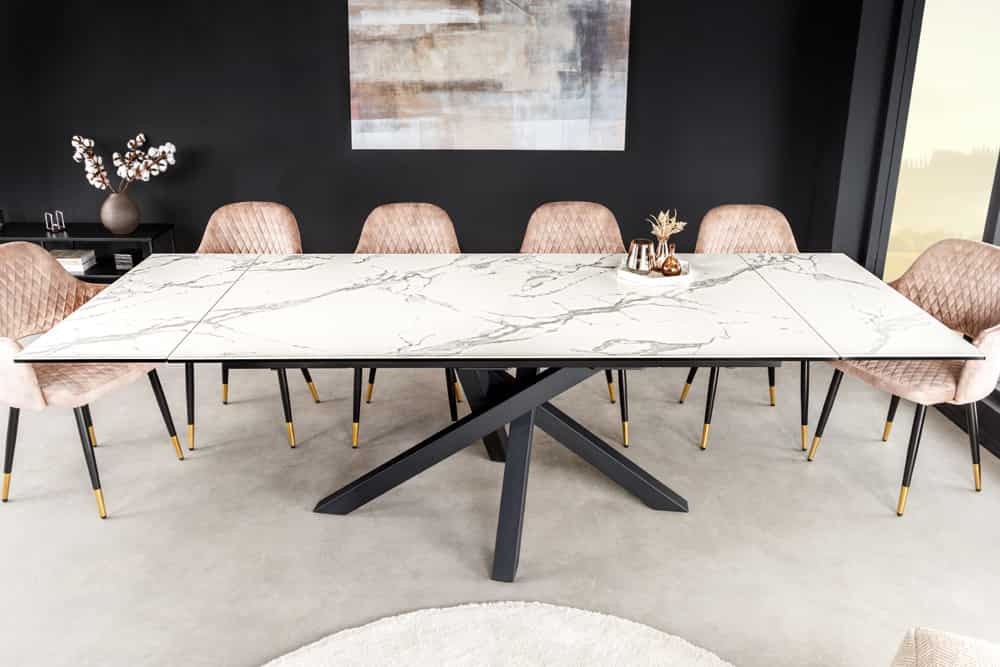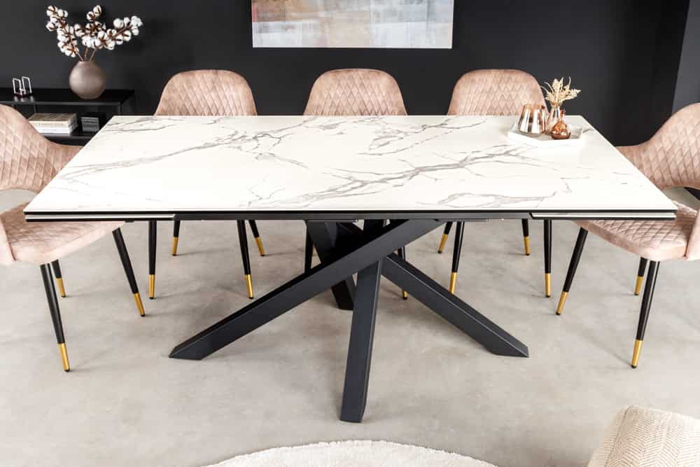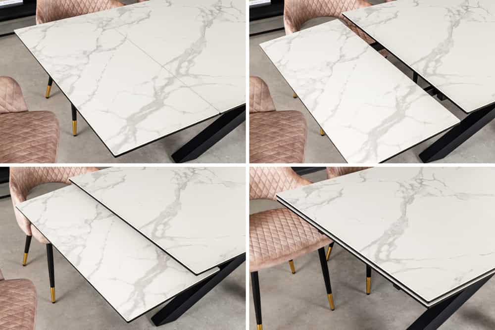 Meghosszabbítható étkezőasztal Paquita 180-220-260 cm fehér márvány