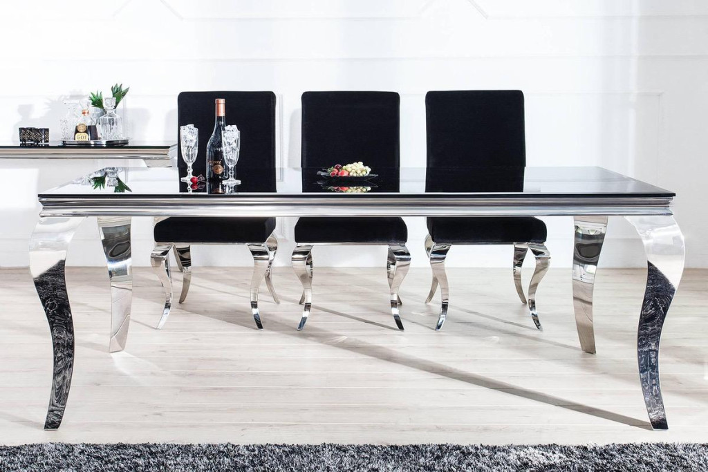 Stílusos étkezőasztal Rococo 200 cm fekete, ezüst