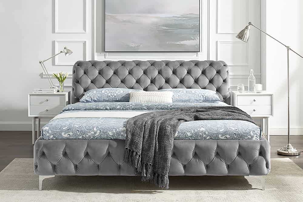 Design ágy Rococo 160 x 200 cm szürke bársony