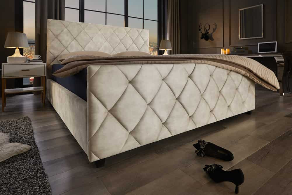 Design ágyneműtárolós ágy Royalis 180x200 cm pezsgő bézs bársony