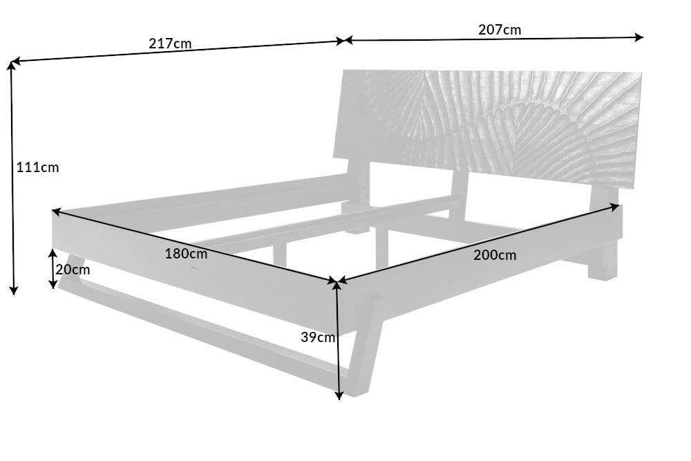 Luxus franciaágy Shayla 180 x 200 cm fekete mangófa