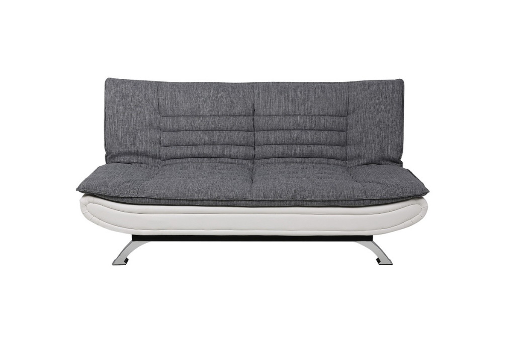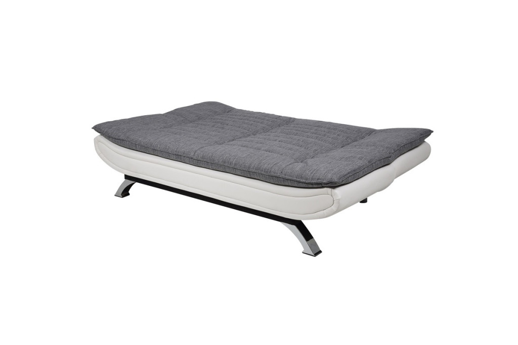 A kanapé stílusos kialakítása révén a nappali kényelmes helyszínévé válik, ahol örömmel töltheti el szabadidejét. A minimalista kialakításnak és a praktikus funkcionalitásnak köszönhetően egy modern bútordarab. A háttámla könnyen lehajtható és ágyazható a vendégek számára. A szövet huzat kényelmes és kellemes tapintású, kellemes kontrasztot képez a szintetikus bőrből készült fehér színű alsó résszel. A stílusos öltés egyedi varázst kölcsönöz a kanapénak. Az időtlen kialakítást fém lábak emelik ki. Gyengéd vonalával ízlésesen és eredetien finomítja belső tereit. Akár ülő, félig döntött vagy teljesen fekvő helyzetben van, ez a világosszürke, vízszintes steppeléssel díszített kanapéágy ideális választás azok számára, akik helyet szeretnének megtakarítani. Masszív vázzal, puha kárpitozással és fekete lábakkal készült, így megbízható és sokoldalú darab kisebb nappalikba, tinédzser szobákba vagy többfunkciós helyiségekbe.