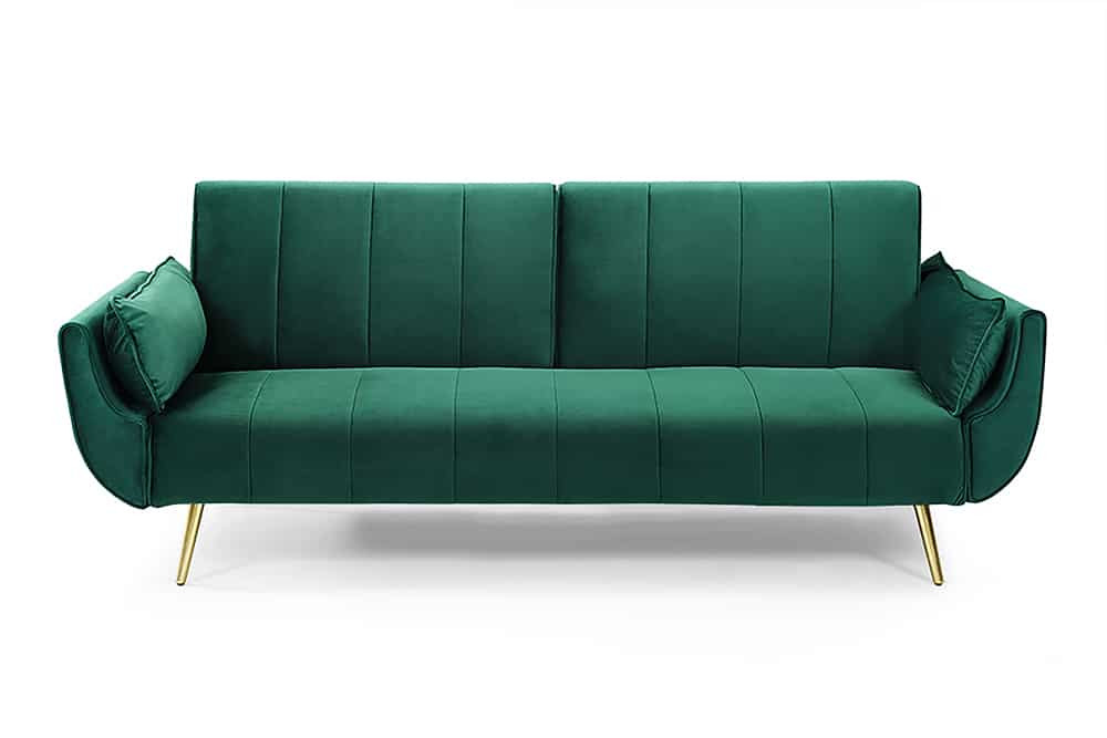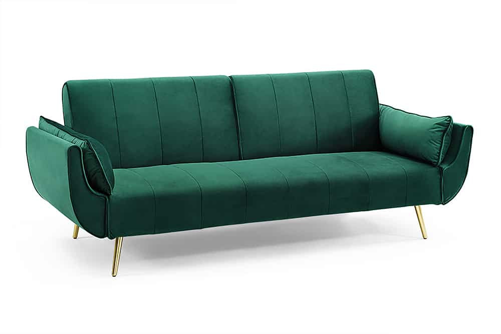 Nyitható kanapé Amiyah / 215 cm zöld bársony / arany