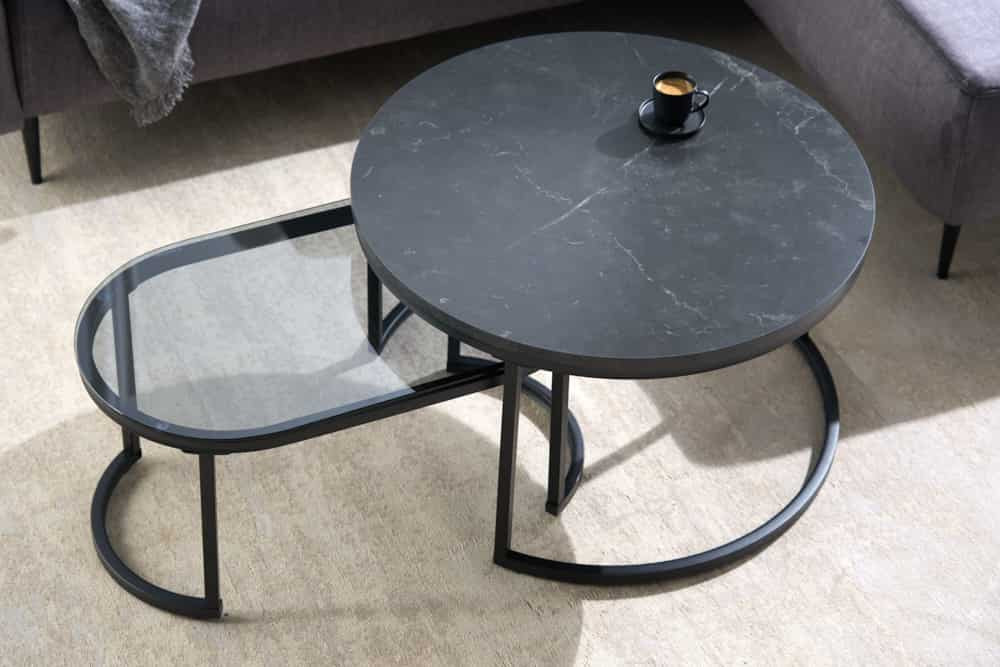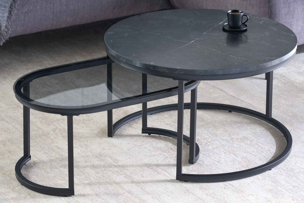 Dohányzóasztal szett Latrisha fekete márvány utánzata - 2 részes
