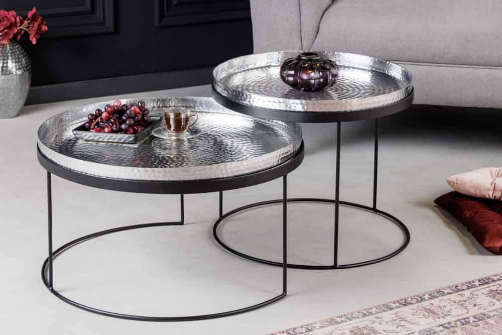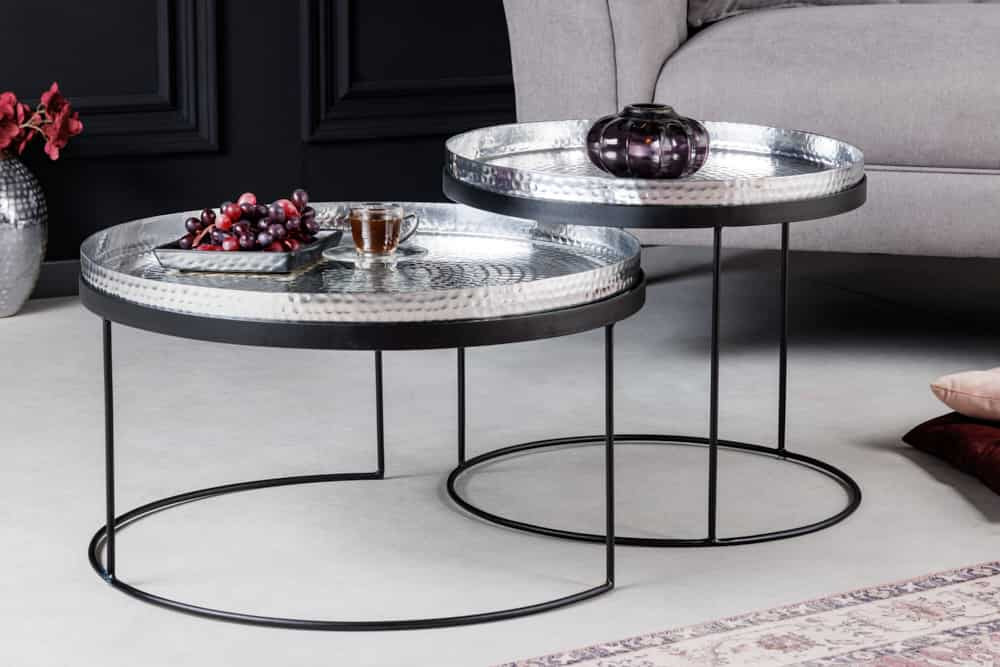 Dohányzóasztal szett Varelli 46-47cm levető asztallappal ezüst