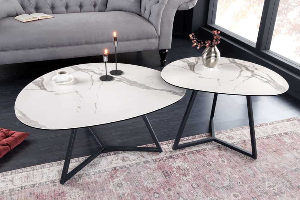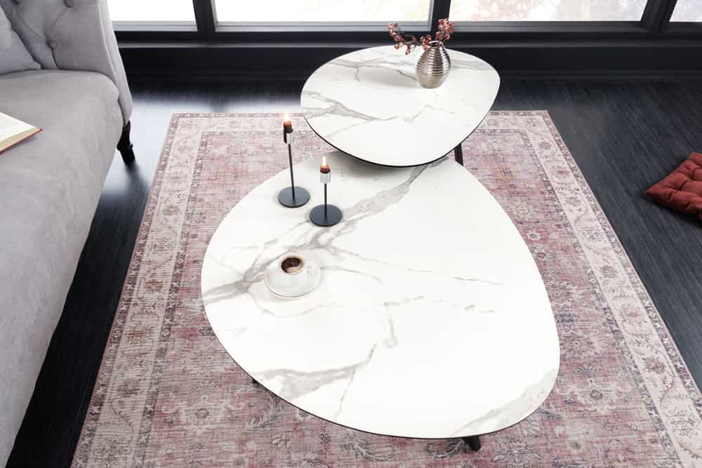 Kerámia dohányzóasztal Paquita 70 cm fehér márvány