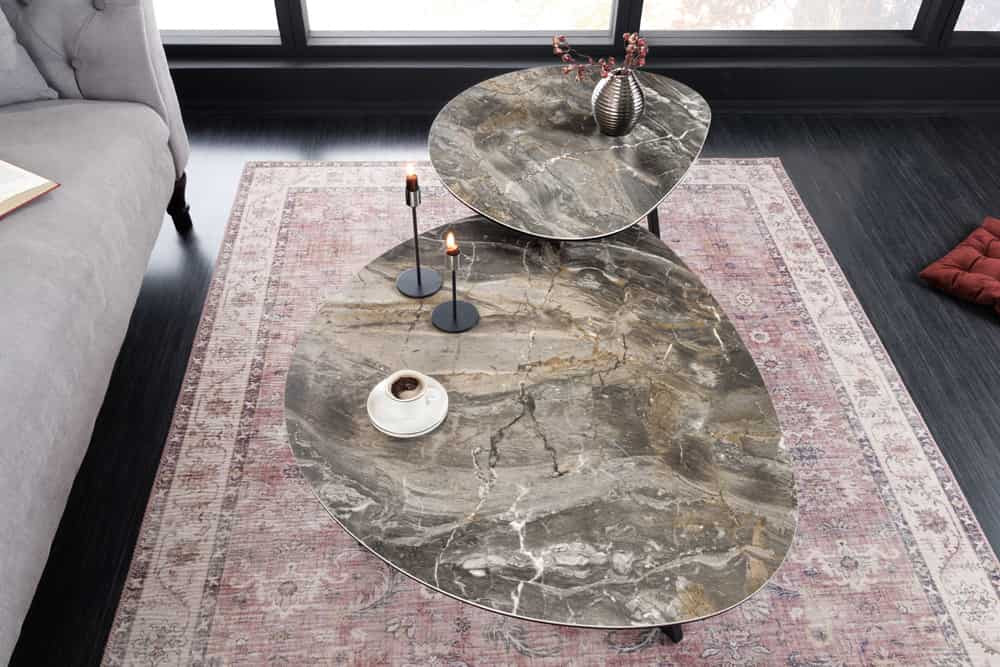 Kerámia dohányzóasztal Paquita 90 cm taupe márvány