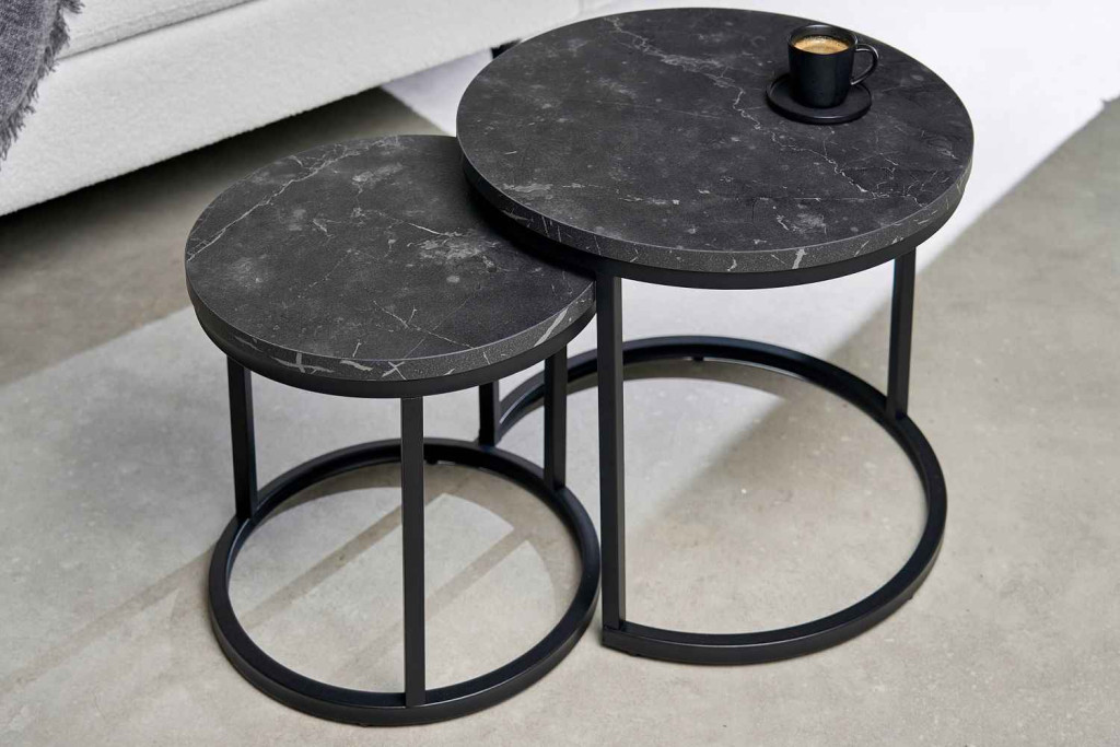 Kerek oldalsó asztal szett Latrisha fekete marvány utánzata - 2 részes