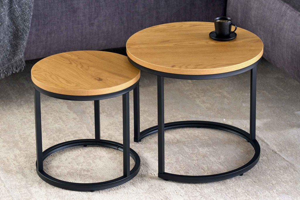 Kerek oldalsó asztal szett Latrisha vad tölgy utánzata - 2 részes