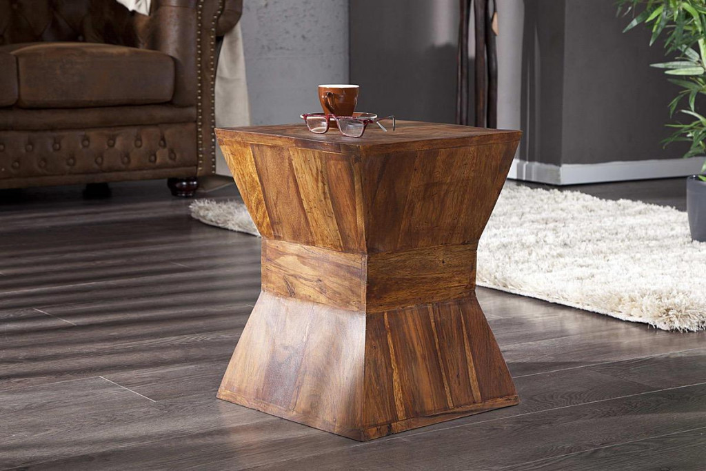 Funnel - a rusztikus, exkluzív és stílusos kisasztal vonzza majd a tekinteteket! A gyönyörű textúra és a természetes anyag mediterrán hangulatot teremt az otthonában. A kisasztal ragyog az elegáns és egyszerű dizájnnak hála. A nagy felület elegendő helyet biztosít akár nagy vázáknak is. Csak Önön múlik, hogy milyen ékszereket szeretne a fordított piramis tetején elhelyezni. Az asztal egyszerűsége és robusztussága puritán dizájnnal párosul.