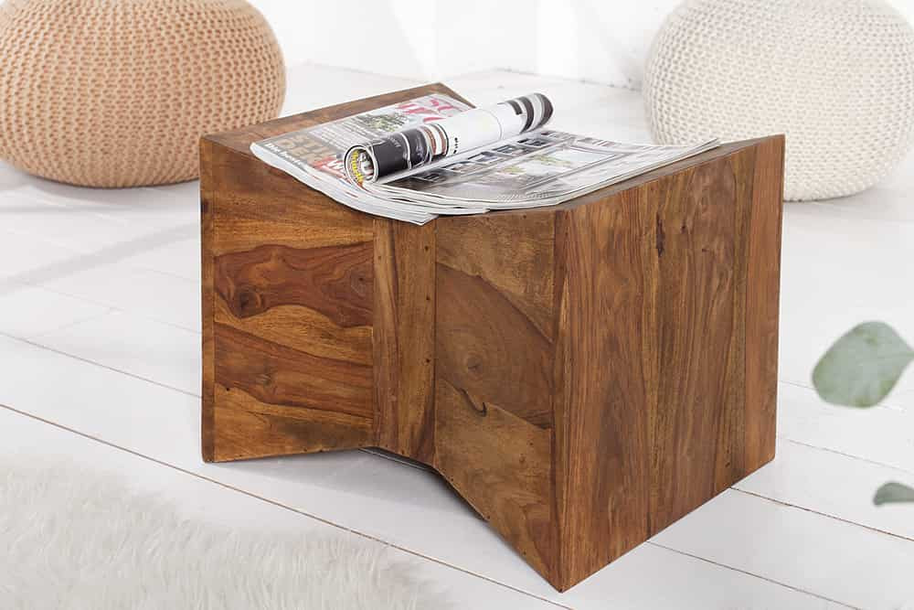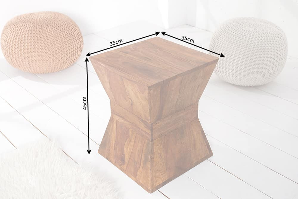 Méretek:Szélesség: 35 cmMagasság: 45 cmMélység: 35 cm Szín: természetes Anyag: Sheesham - masszív fa viaszozott