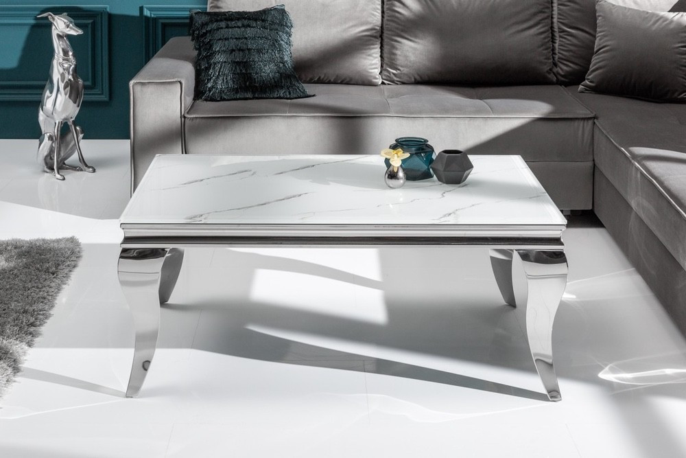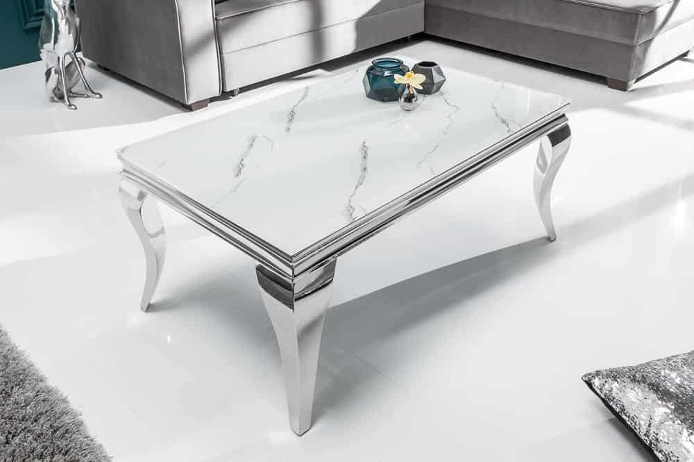 Stílusos dohányzóasztal Rococo 100 cm ezüst márvány