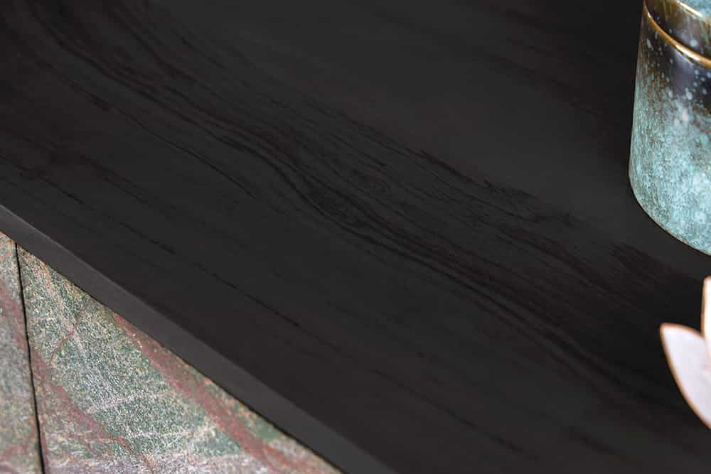 Méretek: 175cm x 75cm x 38cm (szélesség x magasság x mélység) Polcok mérete: 4x 85cm x 25cm x 32cm (szélesség x magasság x mélység) Szín: fekete, zöldes természetes kő Anyag: lakkozott akácfa, fém, kő furnér