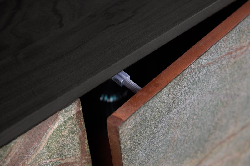 Design komód Quillon 175 cm akác - zöldes természetes kő