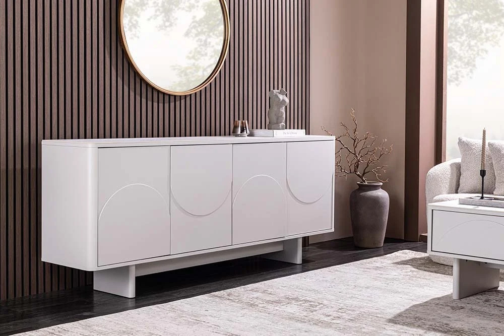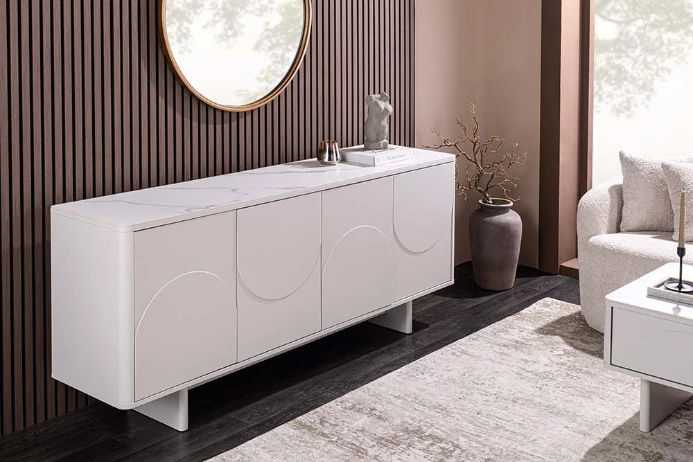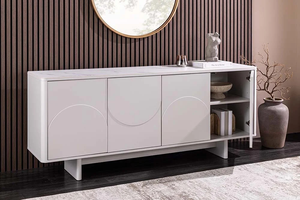 Stílusos komód Elion 180cm 3D fehér / fehér márvány hatású kerámia fedlap