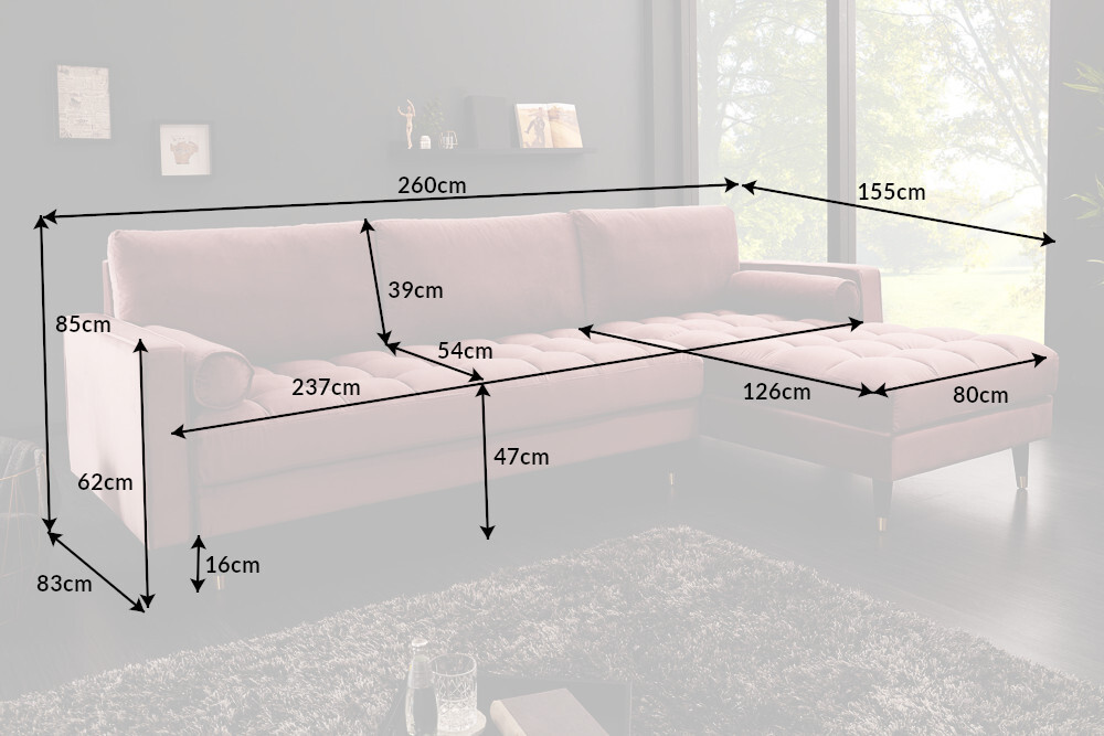 Sarok ülőgarnitúra Adan II 260 cm sötét rózsaszín bársony