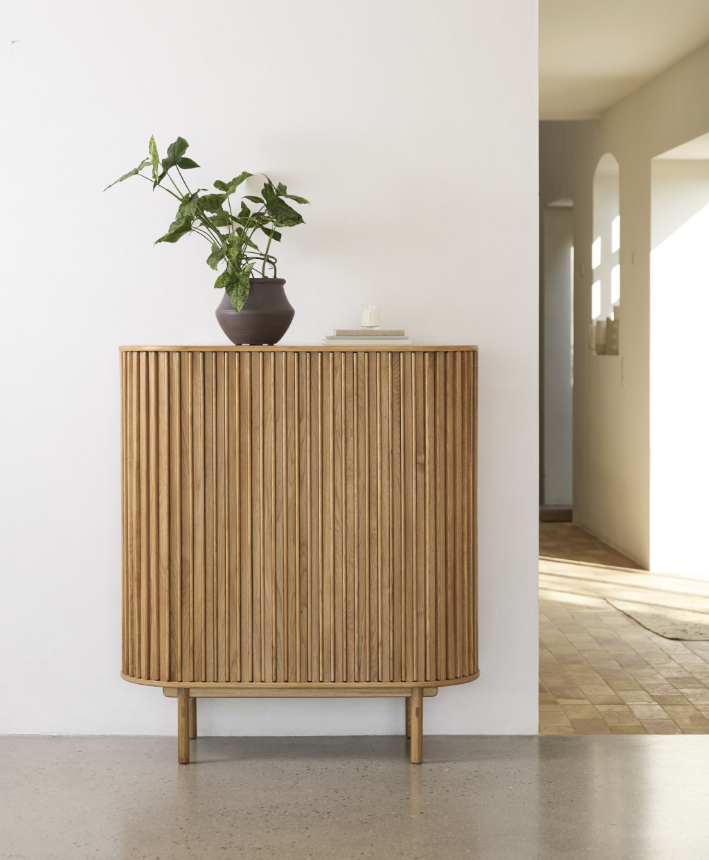 A Wally szekrény sok látogatót elvarázsol otthonában. Megtalálja a helyét a nappaliban, hálószobában, de az előszobában is. A léceknek köszönhető elegáns kialakítás egyedi megjelenést kölcsönöz a szekrénynek. A szekrény érdekesen kialakított tolóajtós nyítása egyben felhívja magára a figyelmet és helyet is takarít meg. Tegye ki fényképeit, ünnepi ajándéktárgyait vagy egy virágvázát ennek a modern darabnak a tetején. Egy fiókkal és két polccal rendelkezik, ahol könyveket, poharakat, tányérokat vagy bármi mást tárolhat. A fa lábak kiemelik általános megjelenését és biztosítják a stabilitást bármilyen felületen. Különösen harmonikusan néz ki az azonos nevű sorozat kiegészítőivel. Helyezzen Wally szekrényt a szobájába és az elégedettség érzése a helyén lesz.