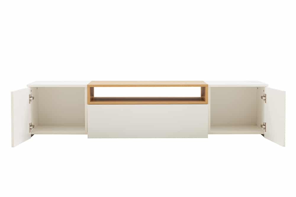 Stílusos TV asztal Arvo 160cm függő fehér - natúr barna