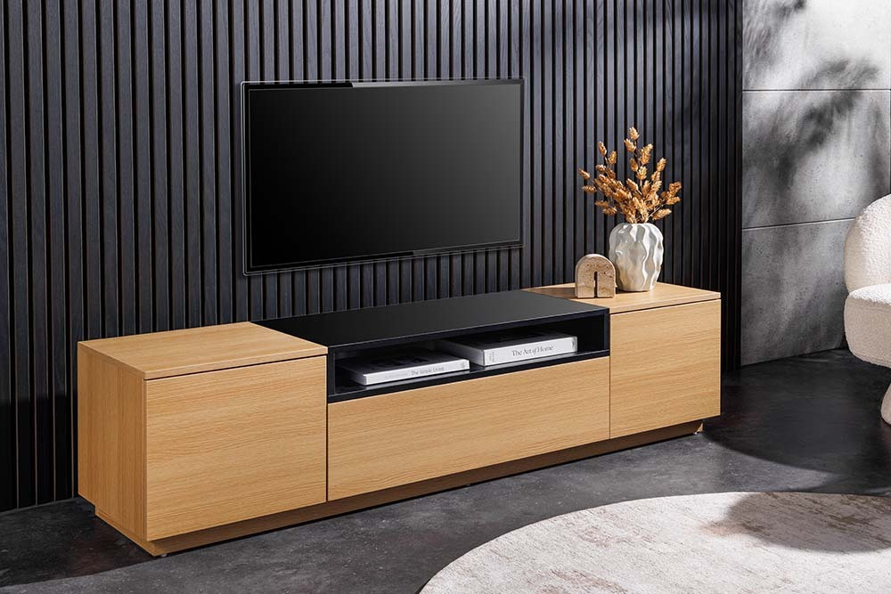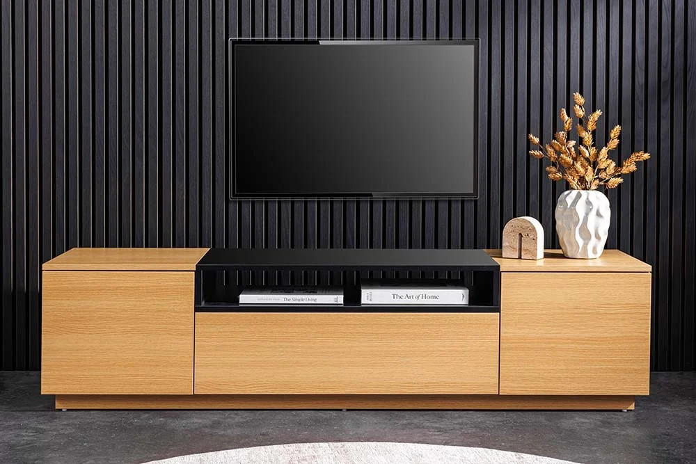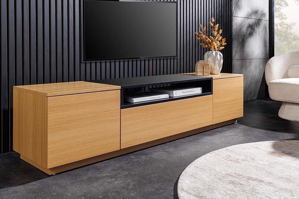 Stílusos TV asztal Arvo 160cm natúr barna - fekete
