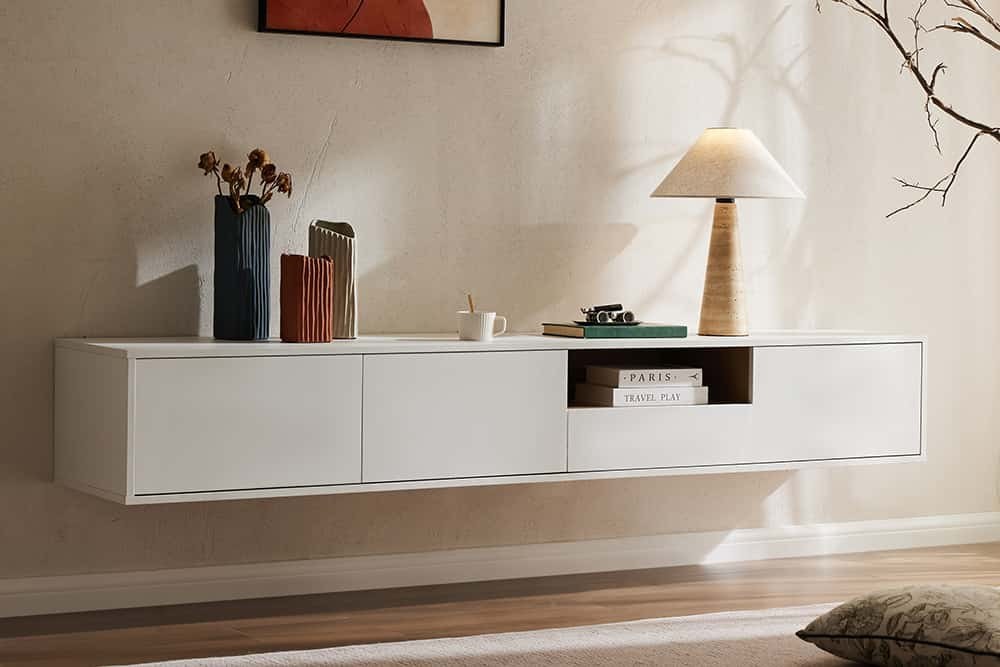 Stílusos TV asztal Arvo 200cm függő fehér - natúr barna