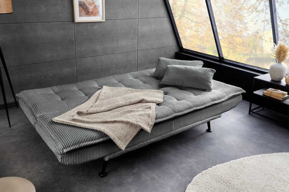 Az ARIA kanapéágy tökéletesen ötvözi a komfortot, az elegáns megjelenést és a praktikus funkcionalitást egyetlen bútordarabban. A puha tapintású, szürke színű kordbársony huzat kifinomult, modern megjelenést kölcsönöz a bútornak, miközben visszafogott eleganciájával harmonikusan illeszkedik modern, skandináv és klasszikus enteriőrökbe egyaránt.