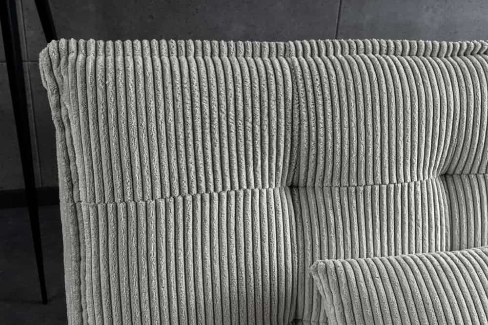 Az ARIA kanapéágy tökéletesen ötvözi a komfortot, az elegáns megjelenést és a praktikus funkcionalitást egyetlen bútordarabban. A puha tapintású, világosszürke színű kordbársony huzat meleg, hívogató hangulatot teremt, miközben kifinomult textúrájával igazi prémium érzetet nyújt. Letisztult formavilágának és visszafogott színének köszönhetően harmonikusan illeszkedik modern, skandináv vagy klasszikus enteriőrökbe.