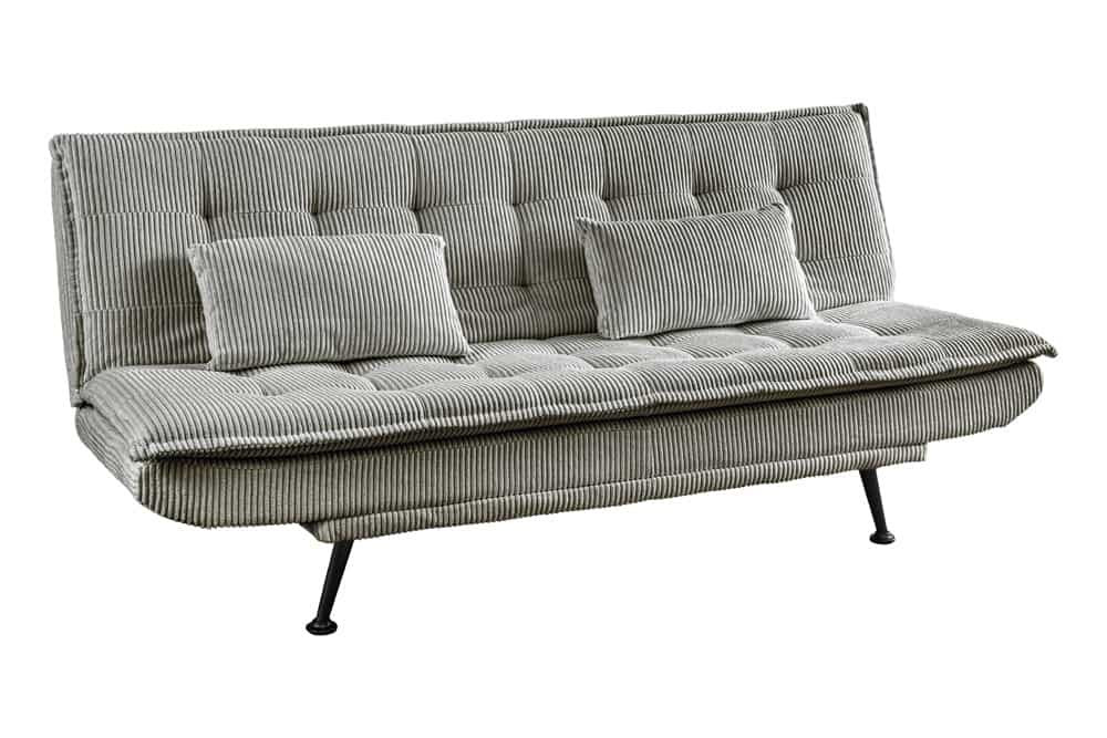 Méretek: 190cm x 90cm x 85cm (szélesség x magasság x mélység) Ülőfelület mérete: 190cm x 53cm (szélesség x mélység) Fekvőfelület mérete: 190cm x 110cm (szélesség x mélység) Ülőfelület magassága a földtől: 45cm Háttámla magassága: 50cm Párnák mérete: 2 x 55cm x 30cm (szélesség x magasság) Szín: világosszürke, fekete Anyag: kord (92% poliészter, 8% polyamide), fém, fa