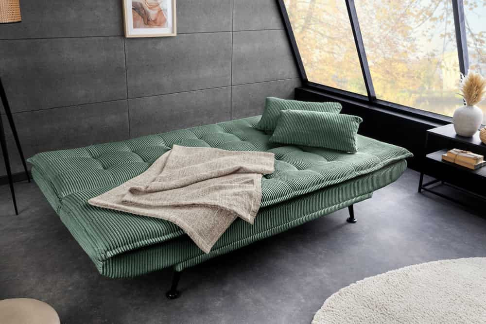Az ARIA kanapéágy tökéletesen ötvözi a komfortot, az elegáns megjelenést és a praktikus funkcionalitást egyetlen bútordarabban. A puha tapintású, zöld színű kordbársony huzat természetközeli, nyugtató hangulatot áraszt, miközben kifinomult textúrájával igazi prémium érzetet nyújt. Letisztult formavilágának és visszafogott színének köszönhetően harmonikusan illeszkedik modern, skandináv vagy klasszikus enteriőrökbe.