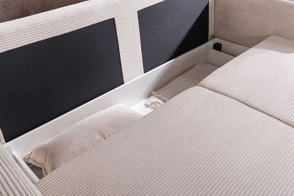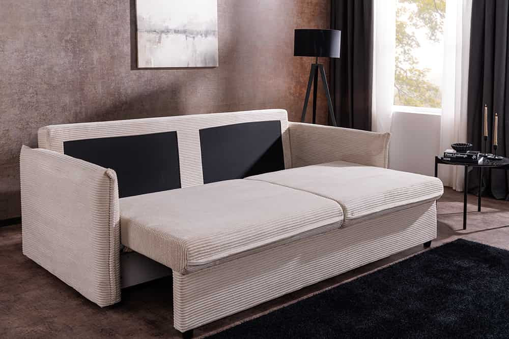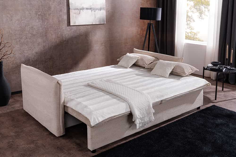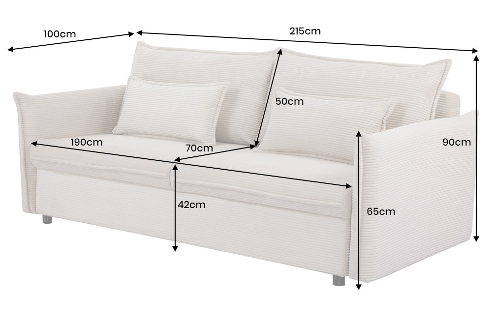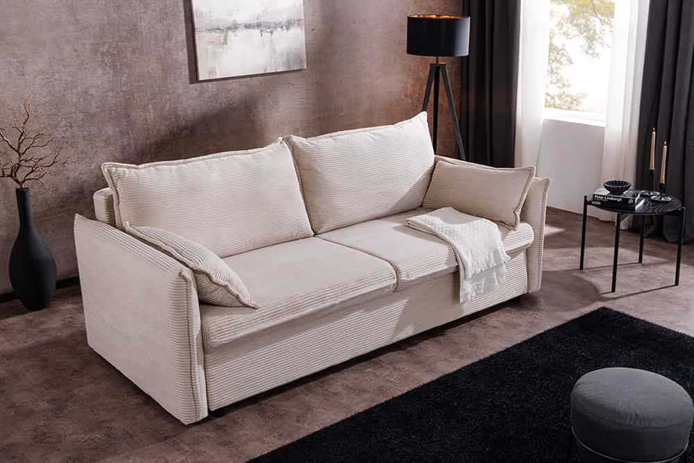 Stílusos 3 személyes ágyazható kanapé Nathalie 215 cm bézs kord