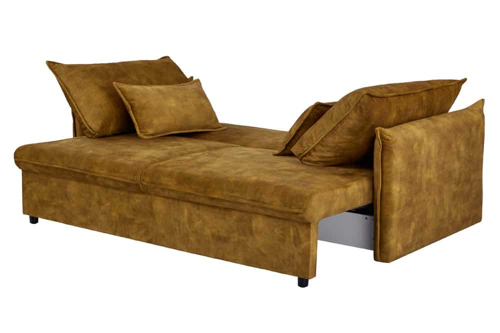 Stílusos 3 személyes ágyazható kanapé Nathalie 215 cm mustársárga bársony