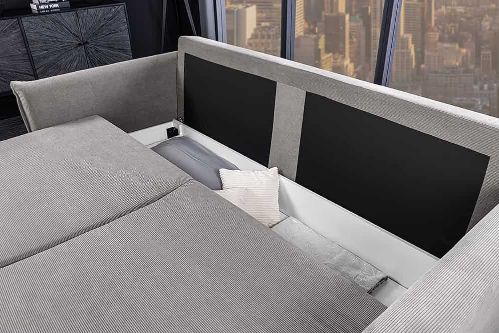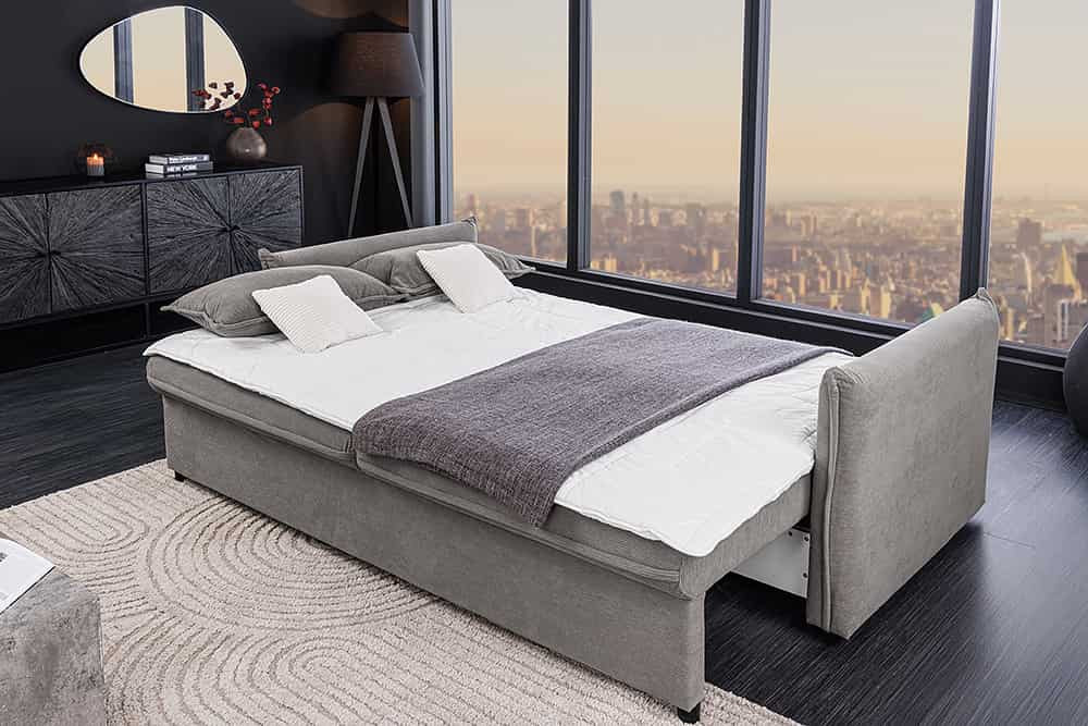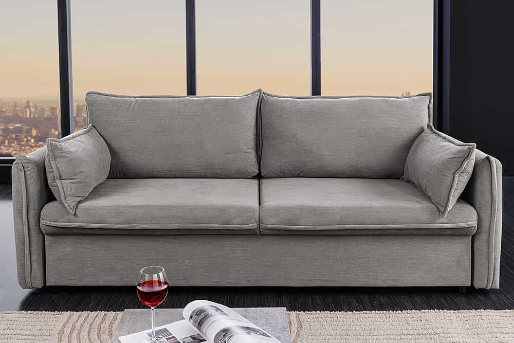 Stílusos 3 személyes ágyazható kanapé Nathalie 215 cm szürke kord
