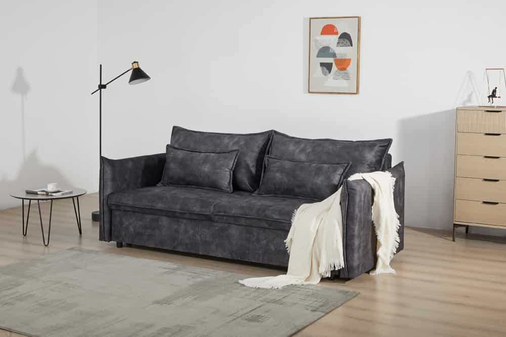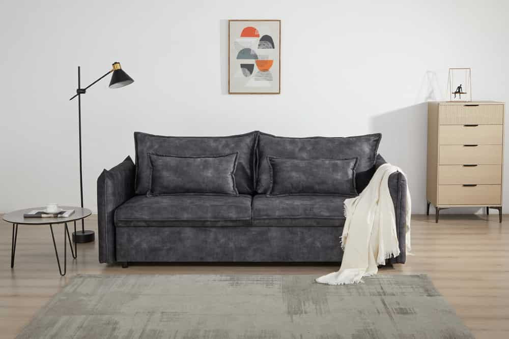 Stílusos 3 személyes ágyazható kanapé Nathalie 215 cm szürke bársony