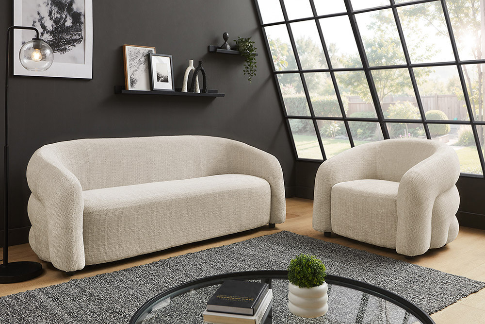 Design kanapé Luna 200 cm 3 személyes bézs zsenília