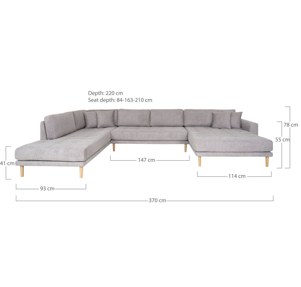 Arden XXL Lounge Sofa U alaku ülőgarnitúra 370 cm szürke - jobbos