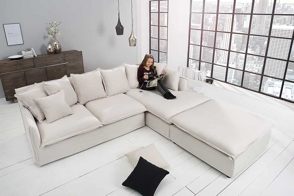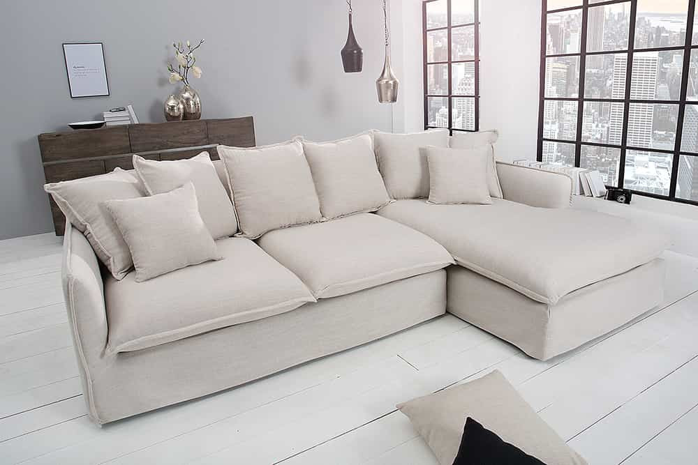 Sarok 3 személyes ülőgarnitúra Eden 255 cm bézs lenvászon leszedhető huzattal