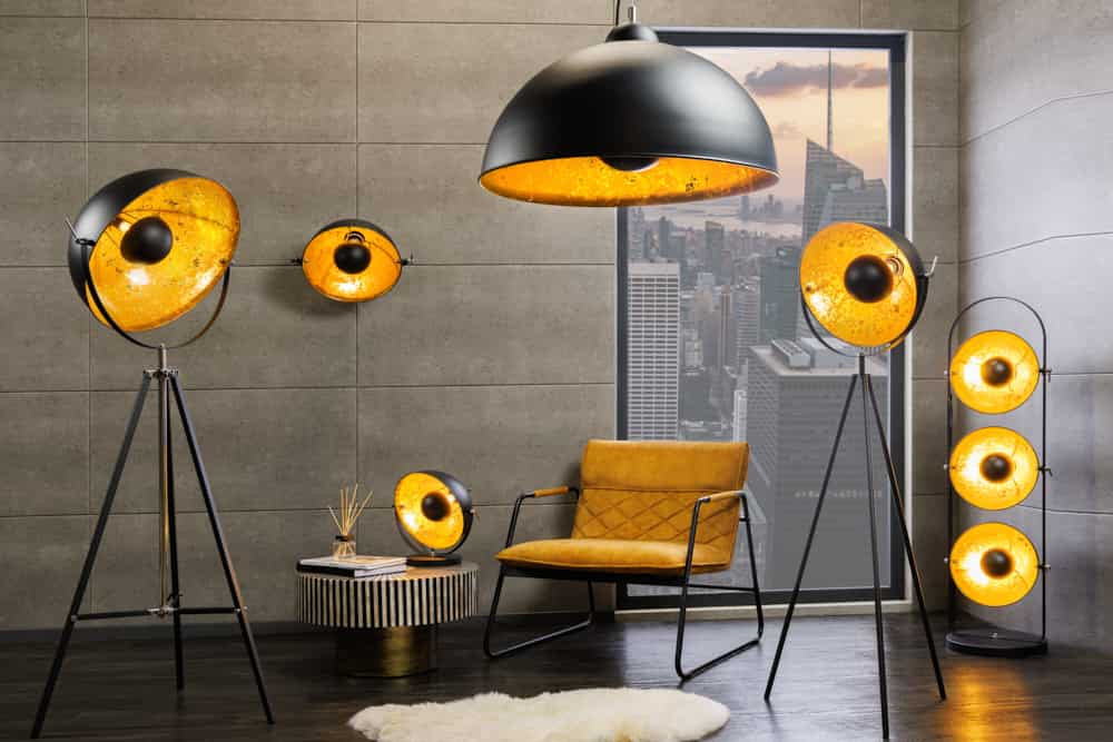 Stage állólámpa – Indusztriális design aranylevél ragyogással