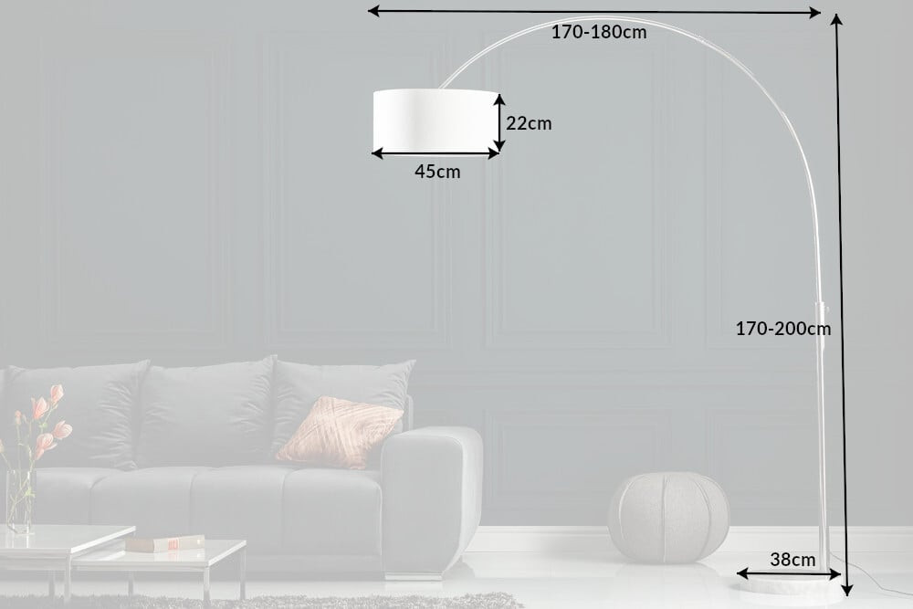 Stílusos állólámpa Arch 170-180 cm fehér vászon